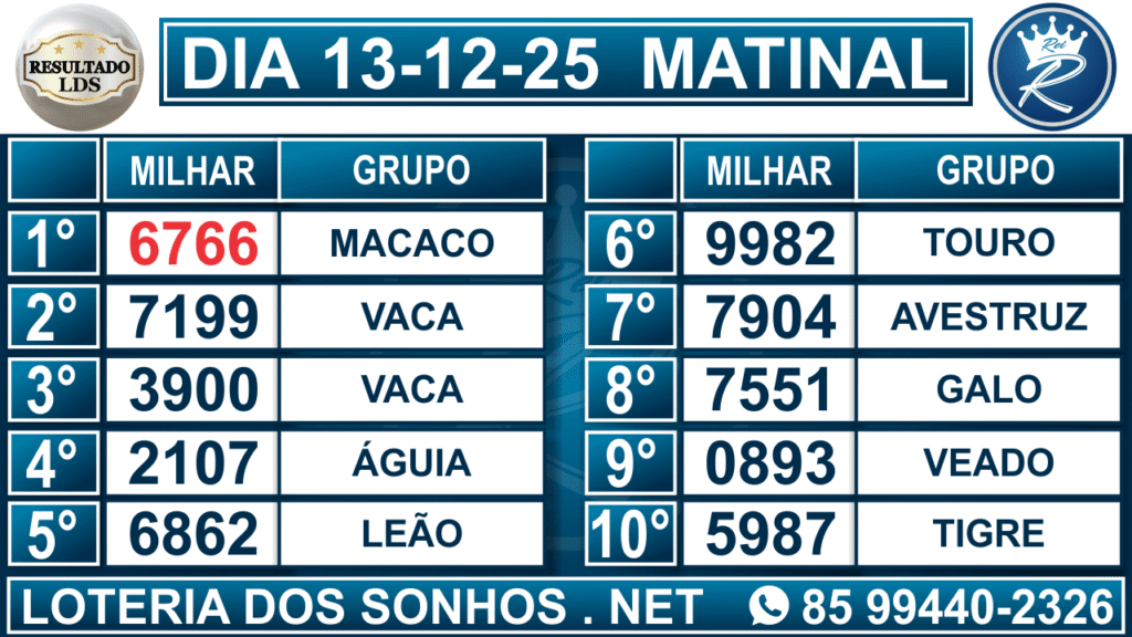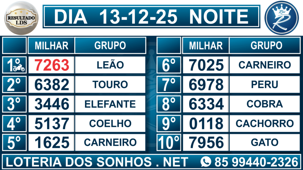 Você pode ver o resultado no nosso Site RESULTADOLOTERIADOSSONHOS.COM.BR, nosso site é o primeiro a postar o Resultado, então fique tranquilo que postamos o Resultado.
