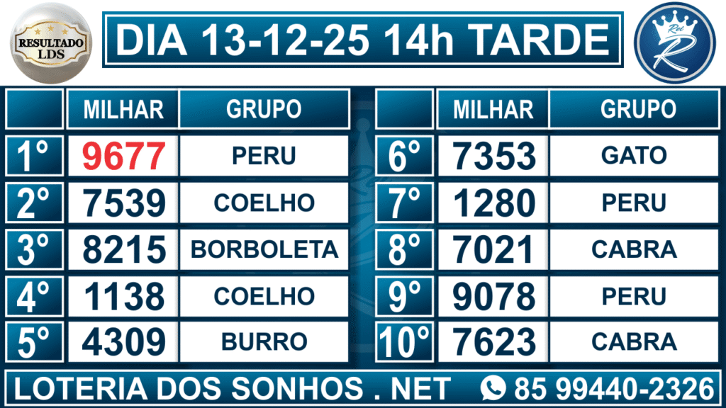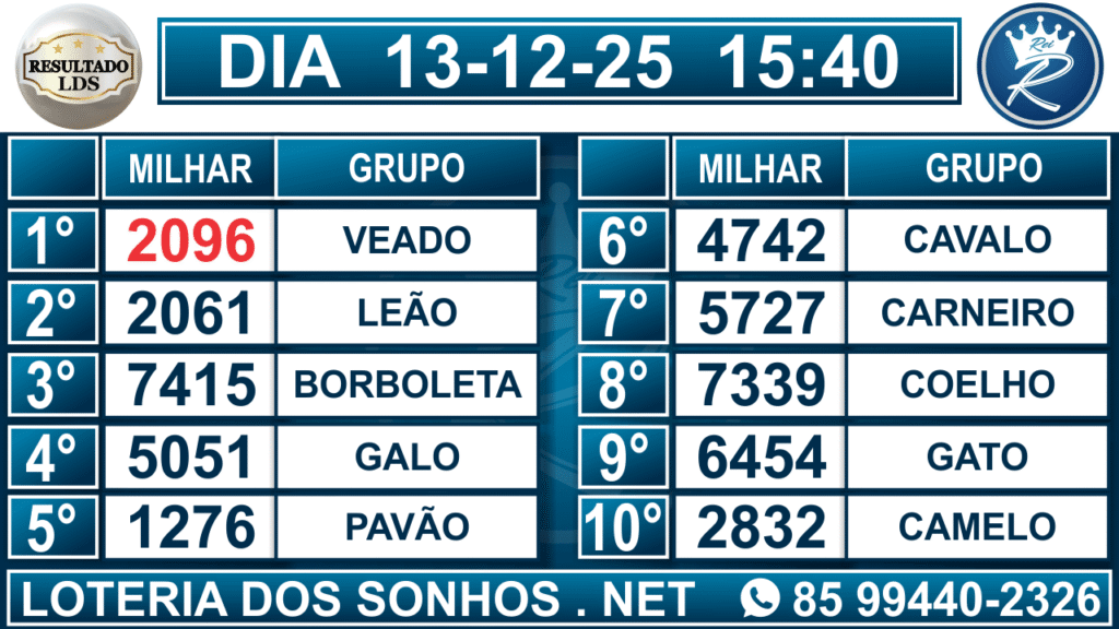 Resultado Loteria dos Sonhos – Resultado das 11h – 14h – 15:40 e 19:40