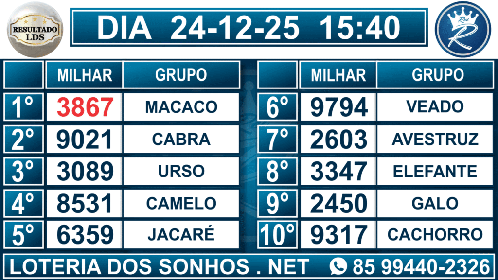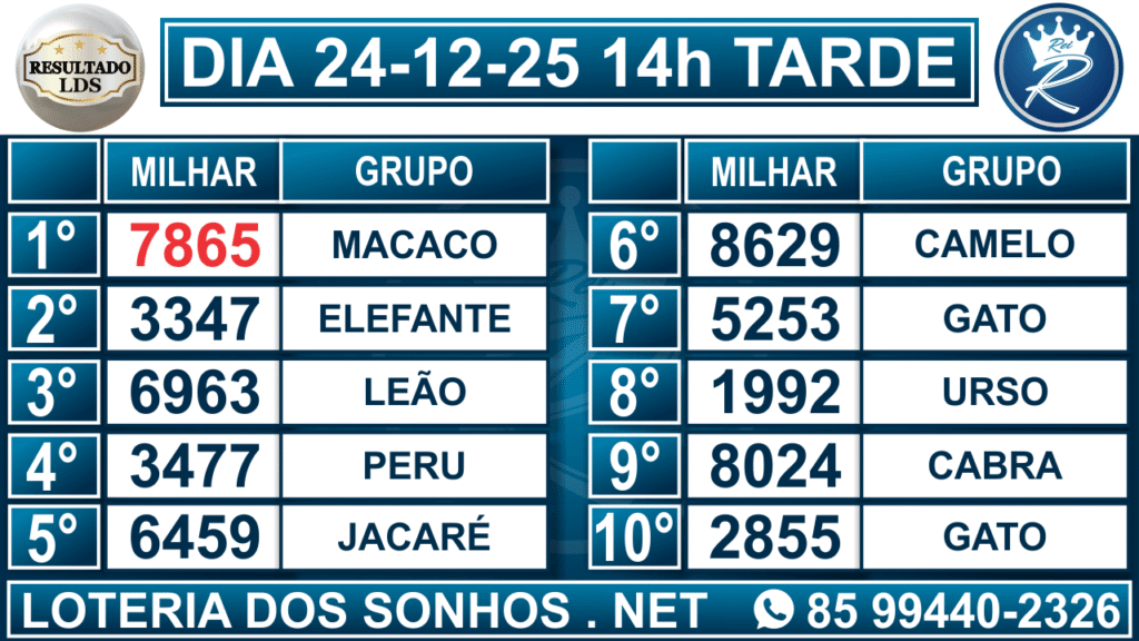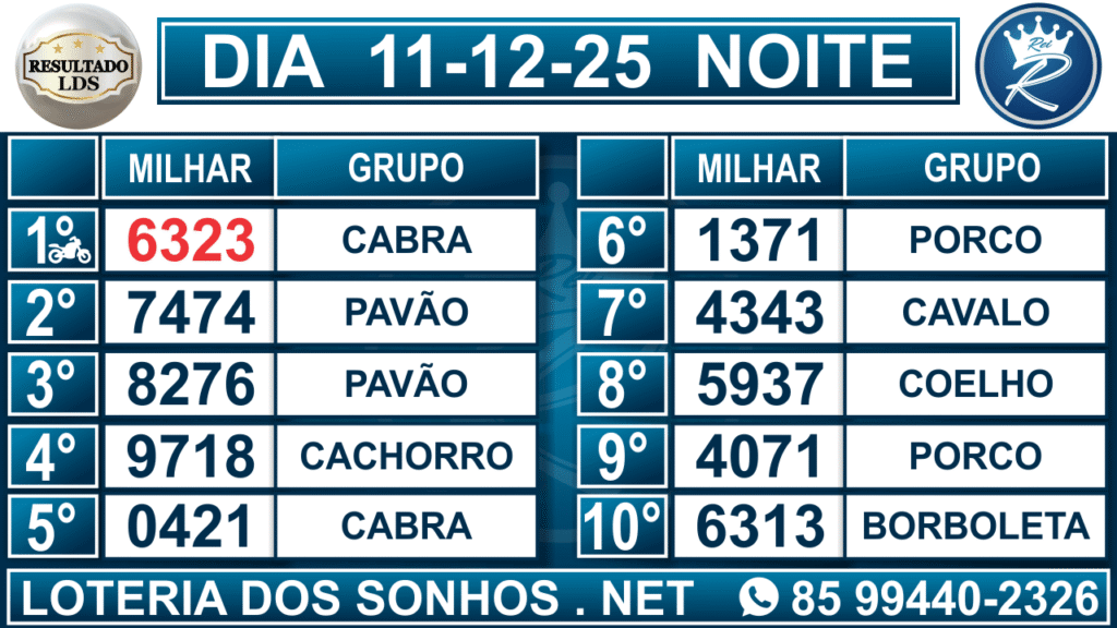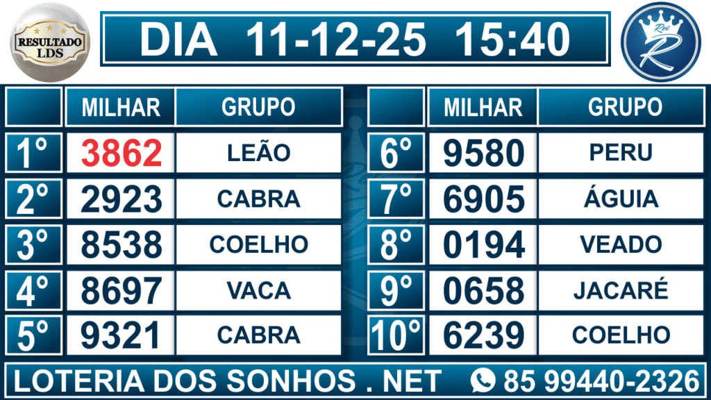 Resultado Loteria dos Sonhos – Resultado das 11h – 14h – 15:40 e 19:40
