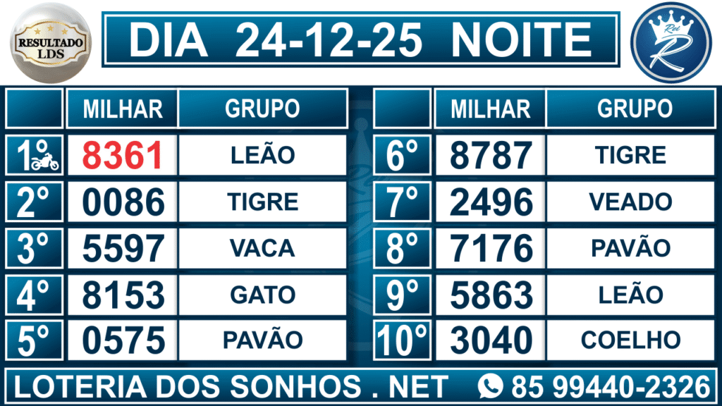 Você pode ver o resultado no nosso Site RESULTADOLOTERIADOSSONHOS.COM.BR, nosso site é o primeiro a postar o Resultado, então fique tranquilo que postamos o Resultado.