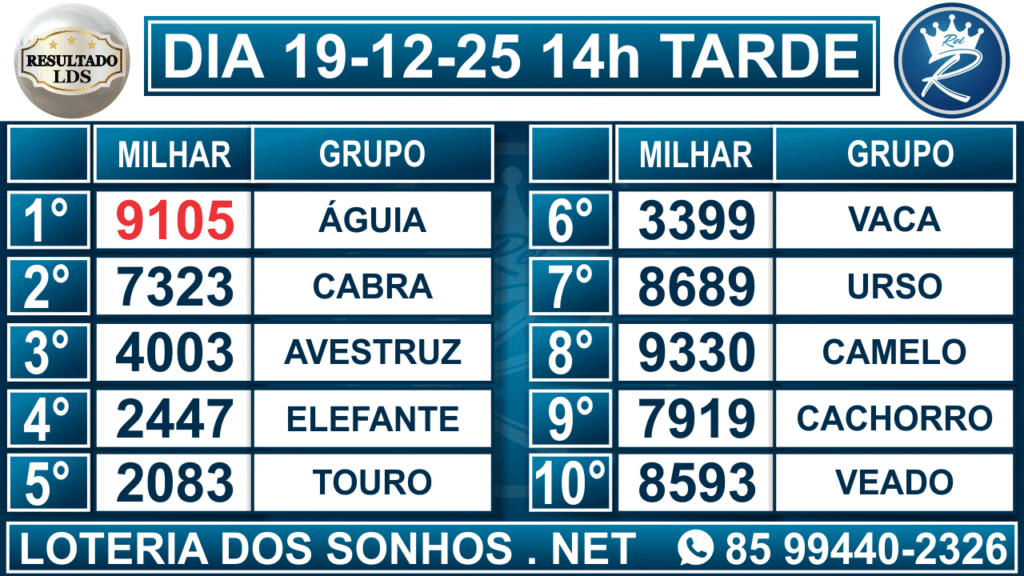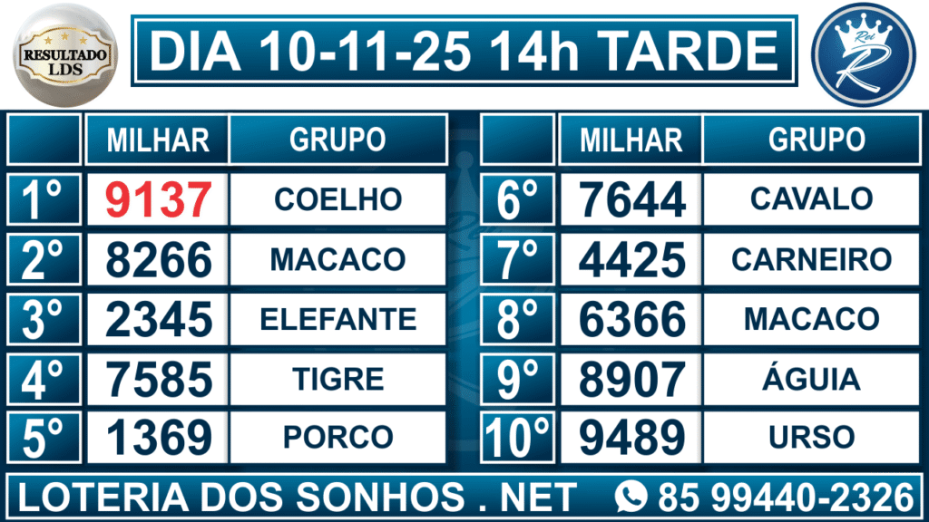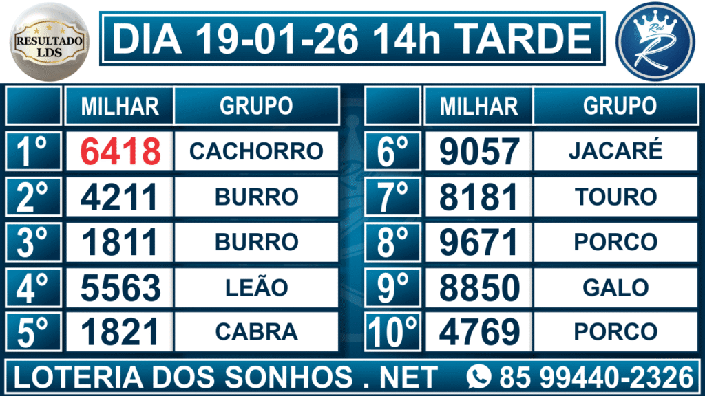 RESULTADO AO VIVO DA LOTERIA DOS SONHOS DAS 14 HORAS